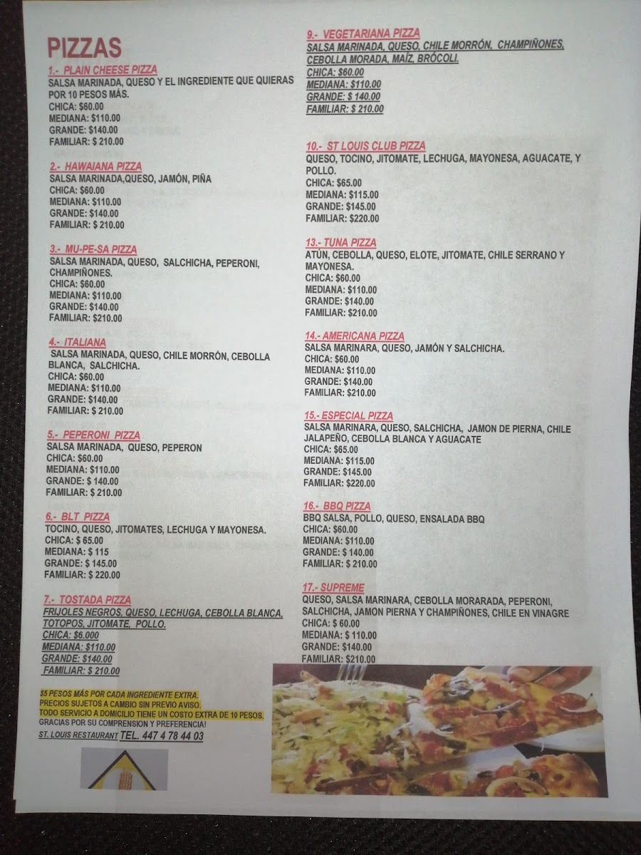 St. Louis Restaurant pizza,pasta y ensalada Menu (Update 2025)